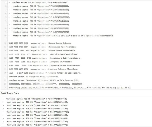 Нижче наведені номери карт шахраїв.